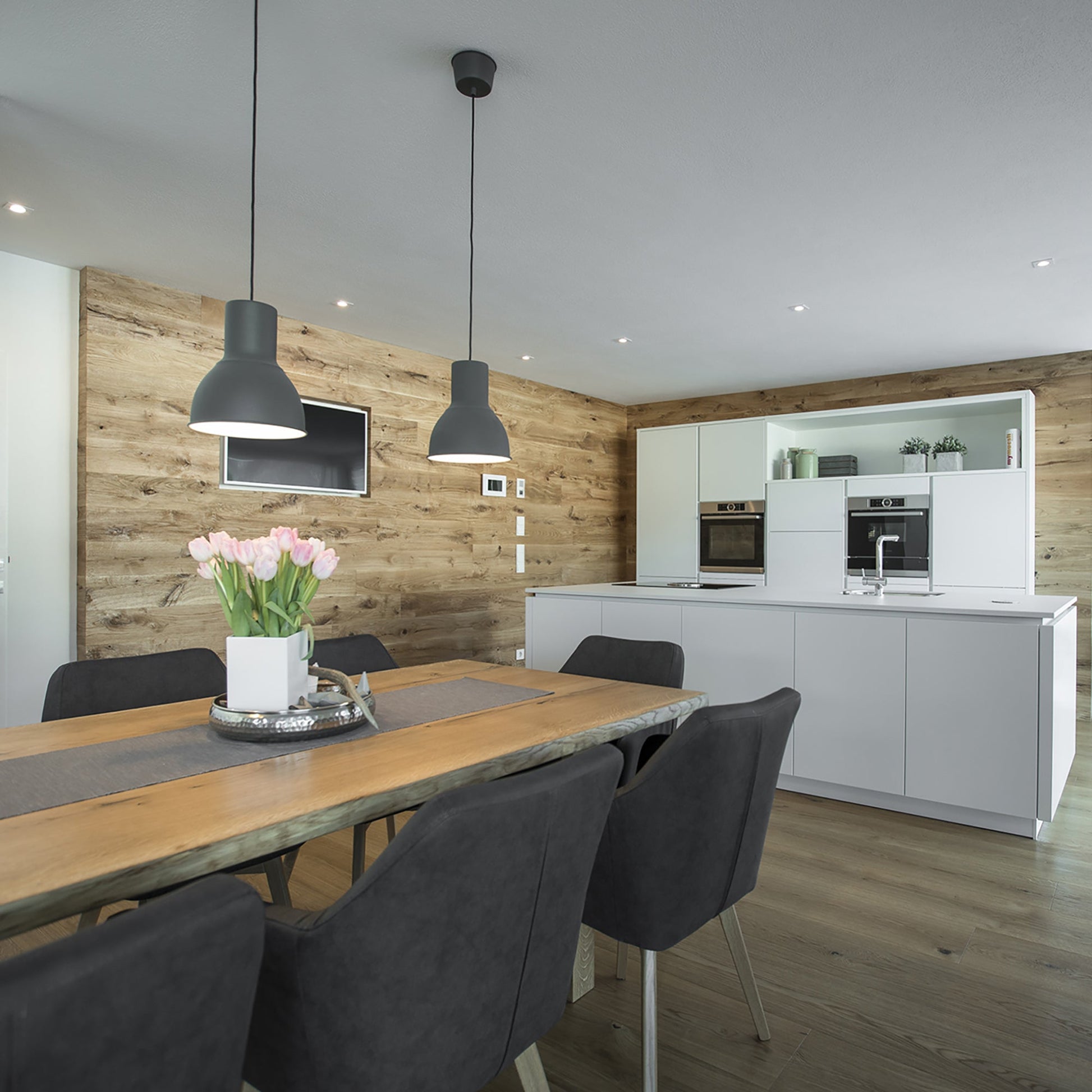 Eiche massiv - Wandverkleidung mit Oberfläche gehackt und gebürstet - rustikal und einzigartig. Eine Wohnwand aus massivem Eichenholz verleiht jedem Raum Gemütlichkeit und Natürlichkeit. Holz hat eine absolut positive Auswirkung auf das Wohlbefinden. Ob als Rückwand im Schlafzimmer, als Schrankverkleidung, Wandvertäfelung oder in der Küche uvm. Eine Wand oder Decke mit Holzverkleidung wertet den Raum erheblich auf.